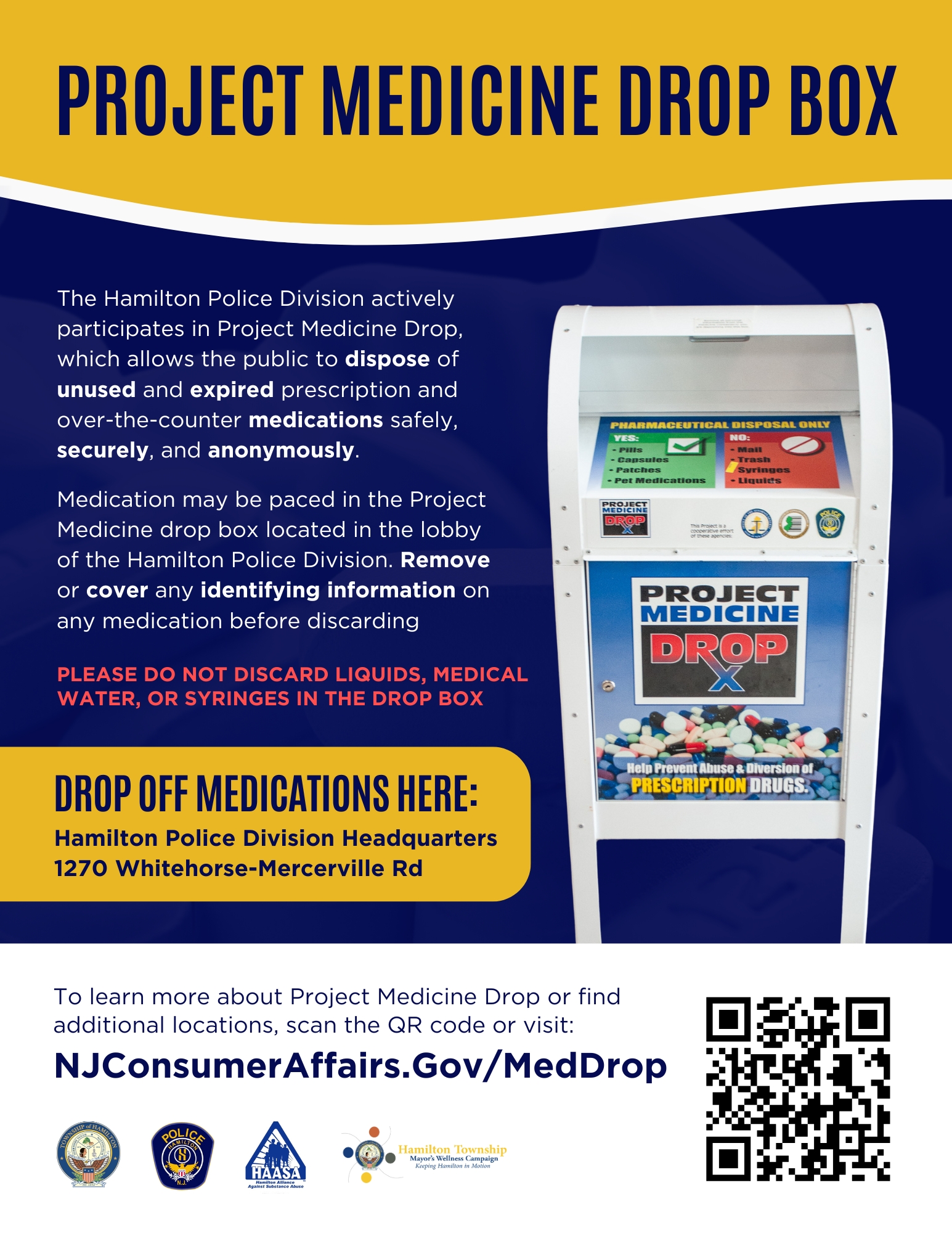 In 1991, Hamilton Township formed the Hamilton Alliance Against Substance Abuse committee (HAASA), a volunteer committee comprised of representatives from the Mayor’s office, the education system, the court system, the health care community, law enforcement, and the community at large. HAASA receives grant funding from the Governor's Council on Substance Use Disorder in order to support educational programming within the Township's schools and the community at-large.